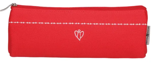 Korallrotes Federmäppchen aus 100% Baumwolle mit besticktem Engelmotiv, mit Reißverschluss, Lieferung auf Backcard