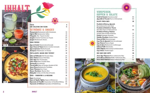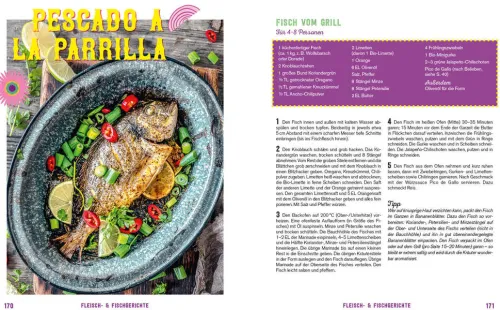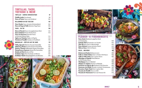 - Rund 100 der besten Rezepte zum Feiern mit Freunden oder zum Selbst-Genießen – mit Streetfood-Lieblingen wie Tacos, Burritos, Fajitas oder Enchiladas, feinen Partysnacks wie Tomatensalsa oder Guacamole und gekühlten Drinks wie Margaritas oder Sangria. Dazu gibt es rundum satt machende Hauptgerichte wie Huhn in Schokoladensauce, Chili con Carne oder mexikanisches Pulled Pork und süße Desserts wie Karamellcreme-Eis, Tres-Leches-Kuchen oder kandierten Kürbis.