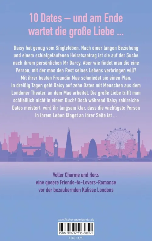 Mit ihrer besten Freundin Mae schmiedet sie einen Plan: In dreißig Tagen geht Daisy auf zehn Dates mit den Teammitgliedern des Londoner Theaters, an dem Mae arbeitet. Denn Mae ist sich sicher: Theatermenschen sind offen, warmherzig und witzig. Genau das, was Daisy braucht. Die große Liebe trifft man schließlich nicht in einem Buch! Doch während Daisy zahlreiche Dates meistert, wird ihr langsam klar, dass die wichtigste Person in ihrem Leben längst an ihrer Seite ist . . .