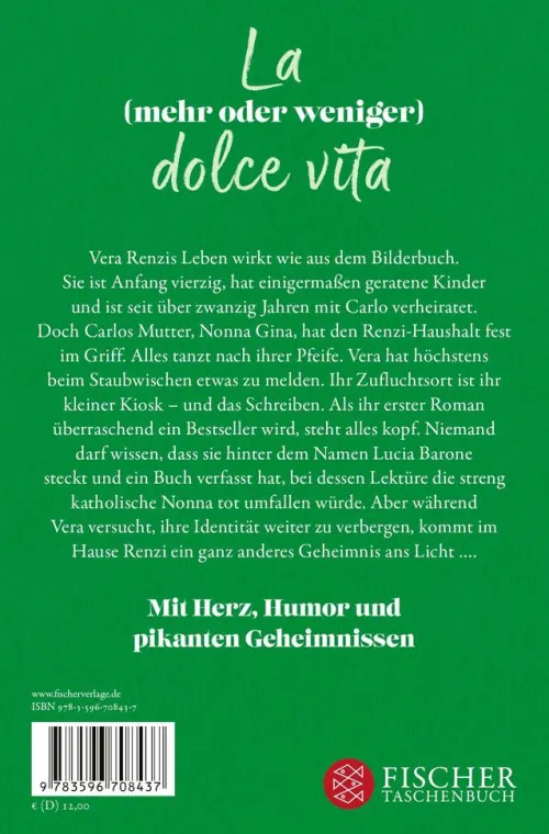 Vera Renzis Leben wirkt wie aus dem Bilderbuch. Sie ist Anfang vierzig, hat einigermaßen geratene Kinder und ist seit über zwanzig Jahren mit Carlo verheiratet. Doch Carlos Mutter, Nonna Gina, hat den Renzi-Haushalt fest im Griff. Alles tanzt nach ihrer Pfeife. Vera hat höchstens beim Staubwischen etwas zu melden. Ihr Zufluchtsort ist ihr kleiner Kiosk – und das Schreiben. Als ihr erster Roman überraschend ein Bestseller wird, steht alles kopf. Niemand darf wissen, dass sie hinter dem Namen Lucia Barone steckt und ein Buch verfasst hat, bei dessen Lektüre die streng katholische Nonna tot umfallen würde. Aber während Vera versucht, ihre Identität weiter zu verbergen, kommt im Hause Renzi ein ganz anderes Geheimnis ans Licht . . . .