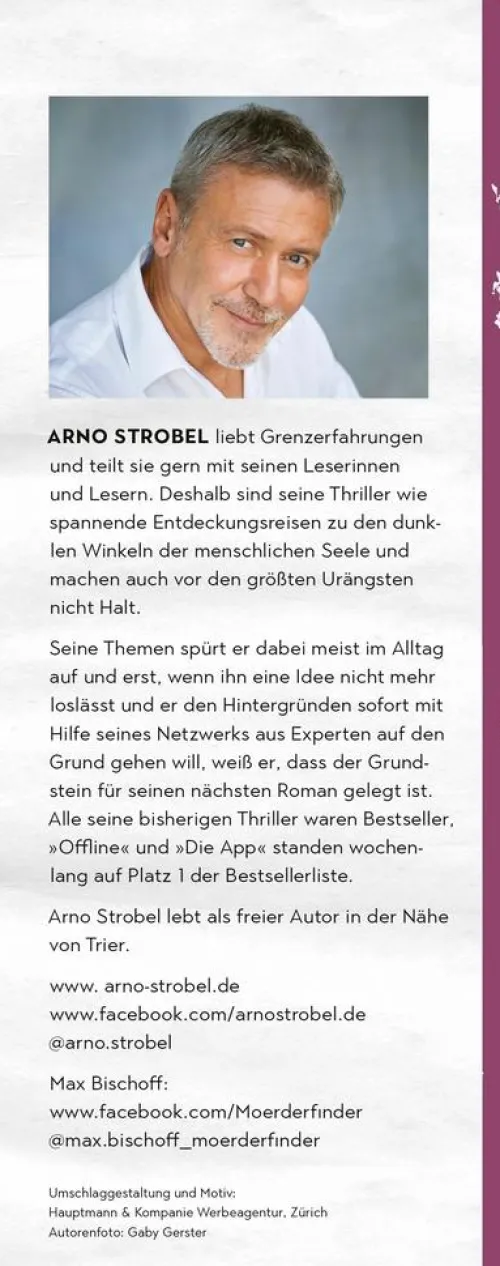 »Bei Arno Strobels Thrillern brauchen Sie kein Lesezeichen, man kann sie sowieso nicht aus der Hand legen. Packend und nervenzerreißend! « Sebastian Fitzek