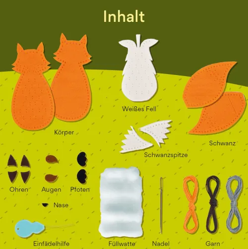 Grundlagen des Nähens lernen: Fuchs Rabbat mit coolem Geheimfach für kleine Notizen. Cooles Bastelprojekt für Kinder ab 8 Jahren. Ausführliche und kindgerechte Anleitung. Tolles Geschenk oder Mitbringsel für Fans der Erfolgsreihe „Die Schule der magischen Tiere“ von Margit Auer mit Buchillustrationen von Nina Dulleck. Niemand kann so gut Geheimnisse hüten wie Rabbat! Mit Nadel und Faden wird der beliebte Fuchs aus der Kinderbuchreihe „Die Schule der magischen Tiere“ zum Leben erweckt. Wie die Filzstoffstücke zusammengenäht und Rabbat mit Watte gefüllt werden, zeigt die farbig illustrierte Anleitung. Was sind Anfangsknoten, Heftstich und Schlingstich? Kinder ab acht Jahren lernen mit dieser AllesKönnerKiste verschiedene Stich- und Nähtechniken kennen und setzen ihr erstes DIY-Nähprojekt eigenständig um. Noch eine Besonderheit: Im Fuchsschwanz befindet sich ein kleiner Schlitz für geheime Notizen. Ein tolles Geschenk zum nächsten Kindergeburtstag. © Auer/Dulleck, Carlsen Verlag GmbH