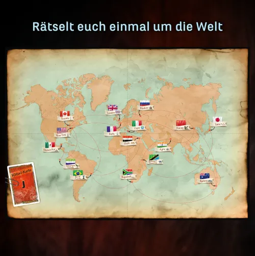 Aus der erfolgreichen Spielereihe „EXIT® – Das Spiel“. Das Escape-Room-Spiel für zu Hause. Kommt mir EXIT® auf Weltreise und löst spannende Rätsel! 1-4 SpielerInnen lösen im Team clevere Rätsel und brauchen dazu Teamgeist, Kreativität und Kombinationsgeschick. Kooperatives Erlebnisspiel im Level: Fortgeschrittene. Mit Tutorial und Timer in der kostenlosen KOSMOS-Erklär-App. Mit und ohne App spielbar. Gesellschaftsspiel für Erwachsene, Fans von Live Escape Rooms und Familien ab 12 Jahren. Ideal als Partyspiel, Eventspiel und als Geburtstagsgeschenk. Da die Materialien für die außergewöhnlichen Rätsel verändert werden, nur einmal spielbar! Mit EXIT® einmal um die Welt! Vor kurzem ist der weltberühmte Professor Ian Jonasson gestorben. Der Archäologe liebte Rätsel! Seine Reisen führten ihn in alle Gegenden der Erde. Hier suchte er unermüdlich nach verschollen geglaubten Schätzen, entzifferte Codes und übersetzte Geheimschriften. Auf der Suche nach seinem Nachlass könnt ihr gemeinsam in diesem Spiel beweisen, was ihr vom Professor gelernt habt. Könnt ihr das Vermächtnis des Professors entschlüsseln? Zum Glück stehen in diesem Escape Room Spiel viele Hilfsmittel zur Verfügung. Schnell, die Zeit läuft! Mit der Reihe „EXIT® – Das Spiel“ bringt KOSMOS das Gefühl der Live-Escape-Rooms zu euch nach Hause. Jede Box bietet einer Gruppe von 1 bis 4 Personen ein außergewöhnliches Spielerlebnis für einen einmaligen und absolut unvergesslichen Abend! Der Wettlauf gegen die Zeit und die cleveren Rätsel dieser innovativen Spielreihe sorgen für Spannung und geistige Herausforderung in den eigenen vier Wänden. Um die Rätsel zu lösen und sich somit gemeinsam aus der misslichen Lage zu befreien ist Teamgeist gefragt! Also arbeitet gut zusammen, denn die Zeit läuft. . . Live-Escape-Feeling im Fortgeschrittenen-Level. Inhalt: 86 Karten, 1 Decodier-Scheibe, 11 seltsame Teile, 6 Postkarten, 1 Aufkleberbogen, 1 Poster, 1 Brief, 1 Luftballon, 1 Spielanleitung