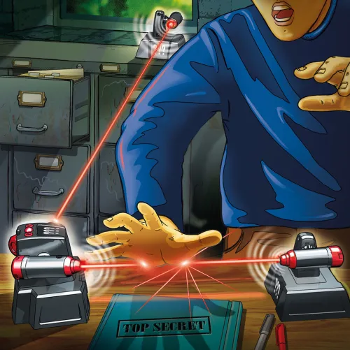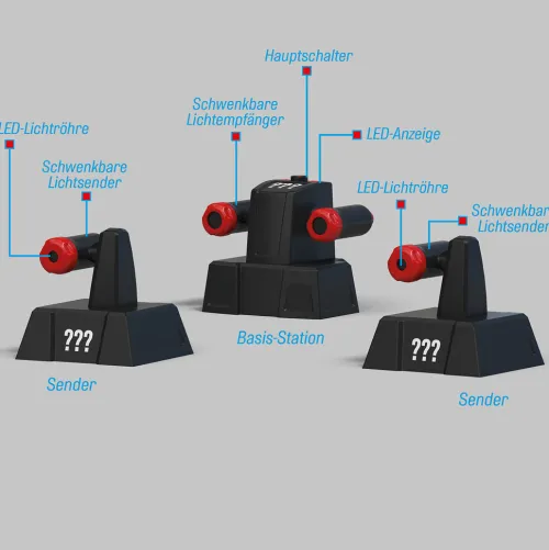 Alarmanlage mit LED-Technik: Unsichtbare LED-Lichtstrahlen machen jedes Zimmer zur Hochsicherheitszone. Mit 3 Lichtmodulen Lichtstrahlen einen Sicherheitsbereich mit unsichtbaren Lichtstrahlen erschaffen. Wird der unsichtbare Lichtstrahl durchbrochen geht der Alarm los. Wassernebel macht die Lichtschranken sichtbar. Spannendes Gadget für kreative Detektiv-Rollenspiele. Detektiv Spielzeug für Kinder ab 8 Jahren. Erwischt! Nie waren Geheimnisse besser geschützt als mit dem Die drei ? ? ? -Sicherheitssystem. Durch diese Lichtschranke kommt niemand unbemerkt durch. Die ausführliche Anleitung erklärt Kindern ab acht Jahren, wie das Alarm-System richtig aufgebaut und verwendet wird: Zwei Sender strahlen die Lichtstrahlen aus. Sie werden aktiviert und auf die beiden Empfänger in der Basisstation ausgerichtet. Wenn jetzt eine Person durch die Lichtschranke geht, ertönt der Alarm. Schnell Batterien einsetzen, Tipps und Tricks lesen und das Kinderzimmer in eine Hochsicherheitszone verwandeln. Dieses Versteck ist sicher!