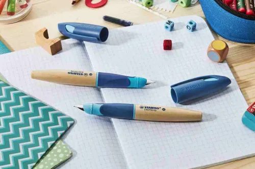 Der erste STABILO Füller mit Holzschaft, in speziellen Versionen für Links und Rechtshänder:innen