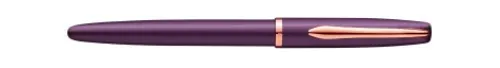 Perlmutt-schimmernd lackiertes Ober- und Unterteil; Clip, Ring und Spitze farblich veredelt; Robuster Clip durch federnd gelagerte Anbringung; Metall-Füllhalter mit Patronenfüllsystem;