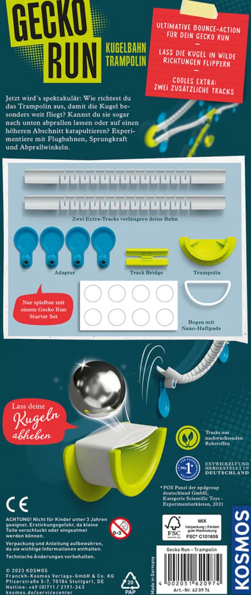 – Die perfekte Erweiterung für Gecko Run von KOSMOS, für noch rasantere Bahnen mit Sprungkraft. Hinweis: nur mit dem Gecko Run äStarter Set spielbar.