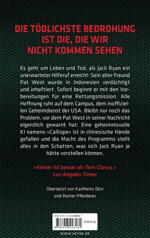 Es geht um Leben und Tod, als Jack Ryan einen Hilferuf seines alten Freundes Pat West erhält: Dieser wird in Indonesien der Ketzerei verdächtigt und inhaftiert. Sofort beginnt er mit den Vorbereitungen für eine Rettungsmission. Doch sie können nicht auf offiziellem Weg gegen die indonesische Regierung vorgehen. Alle Hoffnung ruht auf dem Campus, der vor Ort nach einer Lösung sucht. Bleibt nur noch das Problem, vor dem Pat West in seiner Nachricht eigentlich gewarnt hat: Um seine eigene Festnahme macht er sich weniger Sorgen als um eine geheimnisvolle KI namens »Calliope«. Diese scheint über Indonesien in chinesische Hände gefallen zu sein. Die Macht des Programms stellt alles in den Schatten, was sich Jack Ryan und der Campus je hätten vorstellen können.