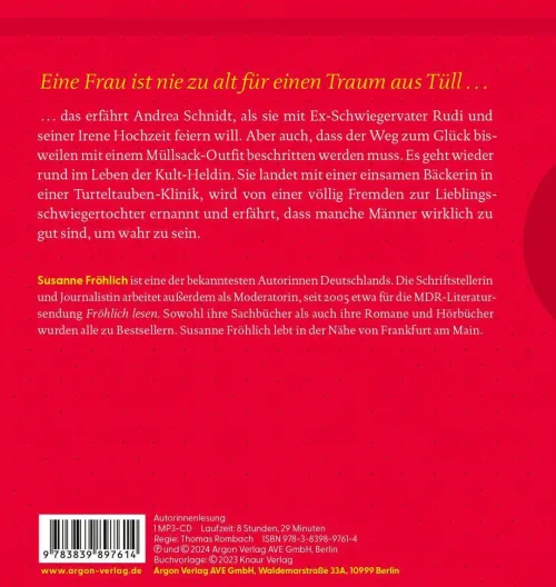 Mit ihrem empathischen Humor und ihren aus dem Leben gegriffenen Figuren begeistert Susanne Fröhlich Millionen von Hörer:innen und landet regelmäßig auf den Bestseller-Listen.