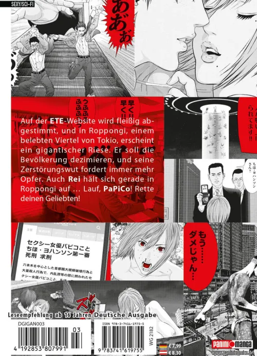 Die Geschichte um ein Superhelden-Pornosternchen und ihrem Fan! Die scheinbar gewöhnliche Pornodarstellerin Chiho „PaPiCo“ Johansson besitzt die unglaubliche Fähigkeit sich in einen riesigen Koloss zu verwandeln, und begleitet von Nachwuchsfilmregisseur und ihrem großen Fan Rei Yokoyamada nimmt sie es mit ebenso großen Bedrohungen auf, um Tokyo zu verteidigen! Das erwartet dich in Band 3:Auf der ETE-Website wird fleißig abgestimmt, und In Roppongi, einem belebten Viertel von Tokio, erscheint ein gigantischer Riese. Er soll die Bevölkerung dzimieren, und seine Zerstörungswut fordert immer mehr Opfer. Auch Rei hält sich gerade in Roppongi auf . . . Lauf, PaPiCo! Rette deinen Geliebten! Für Fans von Seinen- Science-Fiction- und Ecchi-Manga!