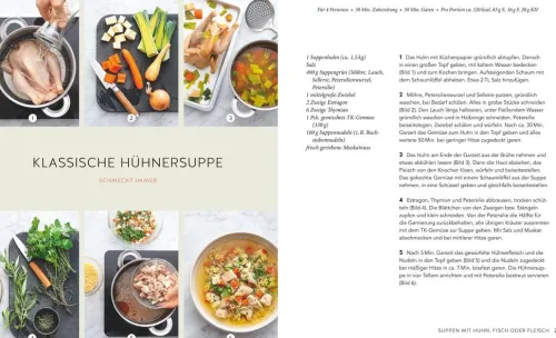 Sie wollten schon immer mal selbst eine traditionelle Hühnerbrühe zubreiten? Das ist Ihre Chance, denn die Step-by-Step-Bilder zeigen, wie einfach das Wundermittel gegen Erkältung ist. Auch andere gesunde Rezeptideen überzeugen mit viel Raffinesse. Aber healthy Food steht hier nicht im Vordergrund – es geht vor allem um den unvergleichlichen Geschmack. Und mit Suppe als Seelenfutter gelingt es dem Autor, Sie glücklich und satt zu machen.