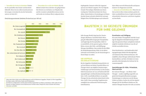 Das Buch ist randvoll mit wertvollen Informationen über wirkungsvolle entzündungssenkende Lebensmittel, die besten neun Dr. Feil-Rezepte und 30 effektive Übungen, die speziell auf Arthrose abgestimmt sind. Dabei ist alles leicht verständlich und ohne Vorkenntnisse umsetzbar.