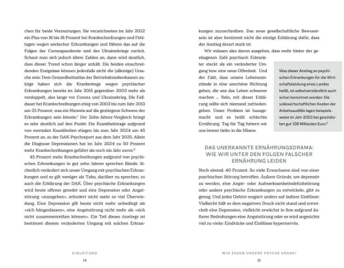 Angst auf dem Teller, Depression auf der Gabel? Was wie ein Albtraum klingt, ist bittere Realität: Falsche einseitige Ernährung erhöht das Risiko für Depressionen, Angststörungen und ADHS dramatisch. Doch es gibt Hoffnung: Ernährungs-Doc Dr. Matthias Riedl zeigt, wie wir mit den richtigen Essensentscheidungen unsere Psyche wirksam schützen können – und zugleich der gesellschaftlichen Mental-Health-Misere entkommen. Basierend auf neuesten Studien und der Arbeit mit Tausenden Patienten enthüllt er, warum Nutella, Pizza und Co. uns immer nervöser, trauriger und erschöpfter werden lassen und auf welche Lebensmittel es wirklich ankommt wie z. B. Haferflocken, Brokkoli und Kurkuma. Denn ab sofort gilt: Darm gesund, Psyche gesund!
