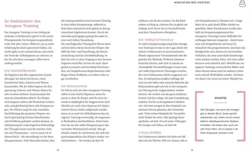 Der Königsweg zur Sofort-Entspannung gegen ein überlastetes Nervensystem? Autogenes Training! Es gibt nichts Geeigneteres, um nachhaltig Ruhe und emotionale Stärke zu finden. Autogenes Training ist leicht erlernbar und wirkt nach wenigen Übungseinheiten. Nur 5 Minuten 2-mal täglich reichen, um Stress zu bewältigen, emotionale wie körperliche Anspannung abzubauen oder gezielt gegen Ängste, Depressionen und Schlafstörungen vorzugehen.