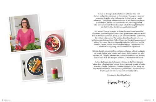 Sicher kennen Sie die Momente, in denen keine Zeit bleibt, um gesund zu kochen. Doch gerade der schnelle Fast-Food-Genuss ist oft weder zuckerfrei noch langfristig sättigend. Gut, dass die Autorin gleich zu Beginn des neuen Rezeptbuches erklärt, wie man auch mit ganz wenig Zeit und kaum Kocherfahrung lecker und gesund ohne Zucker kochen und backen kann.