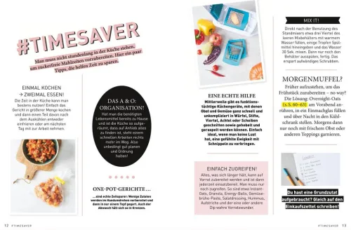 Wer selber kocht, weiß am besten, was im Essen steckt. Mit ein bisschen Vorbereitung und dank der vielen Tipps von Hannah Frey sind Overnight-Oats, One-Pot-Curry oder Linsen-Salat im Nu zubereitet.