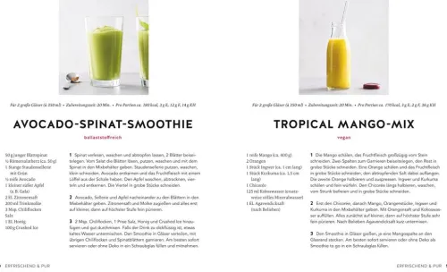 Fünf Mal am Tag Obst und Gemüse essen, wie soll das gehen? Wer einen Mixer hat und dazu die neuesten Rezepte und Tipps, hat auch als Smoothie-Newcomer schnell den Dreh raus! Smoothies begleiten den Alltag vom Energiekick am Morgen bis zum Schlummertrunk am Abend. Kompakt wie die Zutaten im Mixglas präsentiert der GU-KüchenRatgeber Smoothies alles übers Vorbereiten, Mixen, die Geräte, Zutaten und Kombis – und dazu Rezepte für jede Gelegenheit, von pur und erfrischend, bis cremig und powervoll, trendig und deluxe. Ob als Snack oder Energiebooster, Detox- oder Schlankmacherdrink, ob im Glas oder als Bowl: Die neuen Smoothies können pikant wie süß, erfrischend wie sanft und haben für alle ein gesundheitliches Benefit. Mix and match!