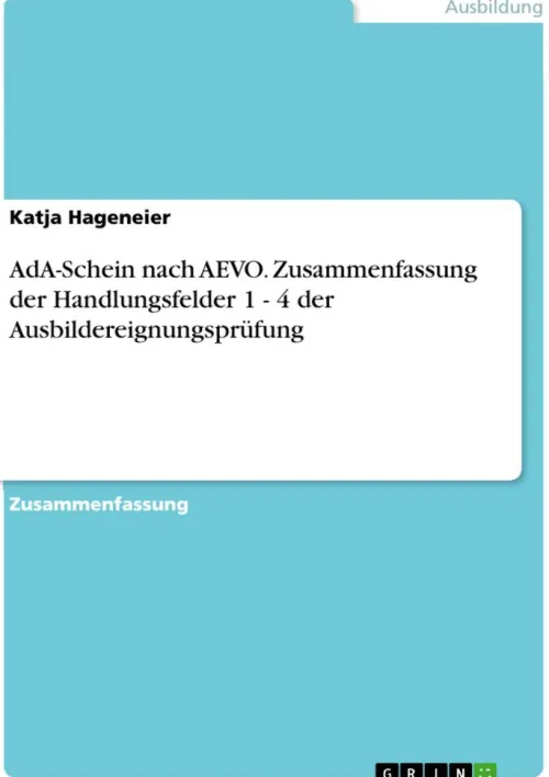 GRIN Verlag Business & Karriere-AdA-Schein nach AEVO. Zusammenfassung der Handlungsfelder 1 – 4 der Ausbildereignungsprüfung