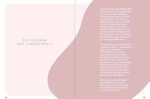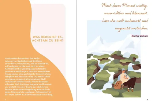 Die einfachen Ratschläge und inspirierende Zitate in diesem schön illustrierten Buch geben dir Anregungen, wie du Achtsamkeit im Alltag leben kannst. Feinfühlige, leicht verständliche Texte erklären, wie du Stress- und Angstgefühle reduzieren, die Verbindung zwischen Körper und Geist stärken und zu mehr Freude, Dankbarkeit und Staunen finden kannst. Im Laufe der kurzen Kapitel erfährst du unter anderem. . .