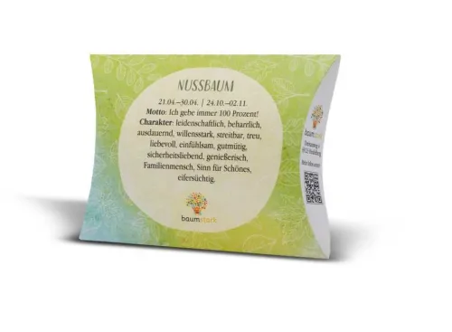 Neben dem Handschmeichler vom ganz persönlichen Lebensbaum erhält der Beschenkte sein ganz persönliches Baumhoroskop, das die Gemeinsamkeiten von Mensch und spezifischem Lebensbaum aufzeigt.
