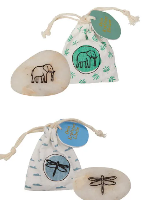 Design Libelle oder Elefant – nicht frei wählbar — 2 Designs im TA / Stein mit Gravur im Säckchen m