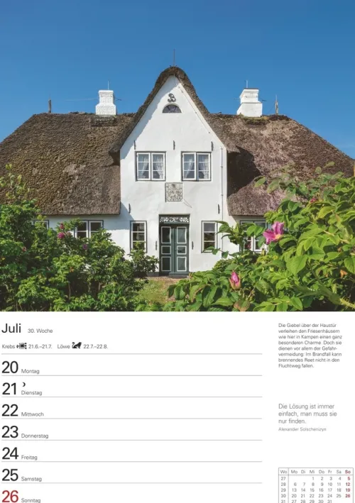 – Strandkorb, Wellen, Nordsee – Sylt: Der Wochenplaner zeigt die Insel von ihrer schönsten Seite- Traumhafte Küstenbilder und idyllische Friesenhäuser: Mit diesem Terminkalender für die Wand kommt beim Eintragen Urlaubsstimmung auf- In Gedanken auf der Lieblingsinsel: Das perfekte Geschenk für Sylt-Fans im Format 25 x 35, 5 cm- Bilderläuterungen, Zitate, viel Platz für Notizen und Wochenchronik auf der Rückseite: Das ist der Sylt-Wochenkalender 2026- Hochwertige Fotos und tolles Organisationstool: Harenberg Wochenplaner aus dem Athesia Kalenderverlag