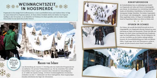 Weihnachten auf Schloss Hogwarts ist einfach magisch! Funkelnde Dekorationen, leckere Speisen und fröhliche Musik machen die Zeit zu einem unvergesslichen Erlebnis für Harry Potter und seine Freunde. Und natürlich gibt es immer jede Menge Schnee. Dieses Buch entführt den Leser auf eine interaktive Reise durch die weihnachtliche Zauberwelt. Ob die mit Weihnachtsbäumen geschmückte Große Halle, der festliche Weihnachtsball oder Mrs Weasleys selbst gestrickte Weihnachtspullover – hier gibt es alles Wissenswerte über die Weihnachtszeit in Hogwarts. Mit vielen spannenden Insiderinfos, Fotos vom Set und herausnehmbaren Extras wie Postern, Stickern und dem Programmheft für den Weihnachtsball ist dieser Band das ideale Geschenk für jeden Harry Potter-Fan.