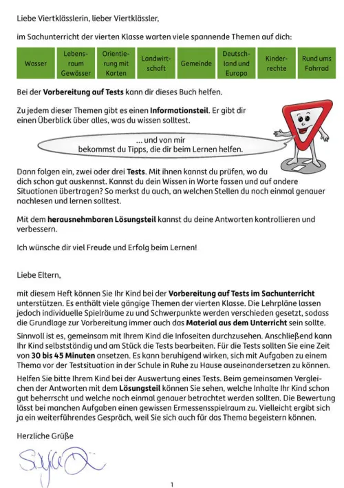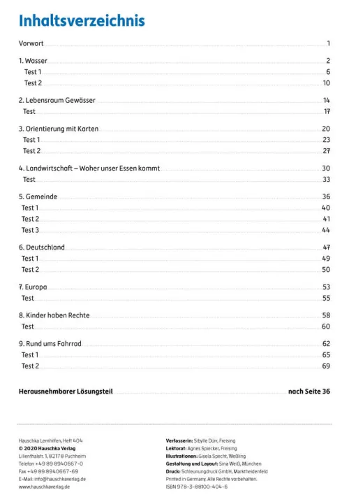Inhalte: Gemeinde und ihre Aufgaben, Verkehrserziehung und Fahrradprüfung, Wasser mit seinem Kreislauf und seinen Zustandsformen, Gewässer als Lebensraum, landwirtschaftliche Produktion von Lebensmitteln, Orientierung auf Karten, Deutschland und Europa, Kinderrechte