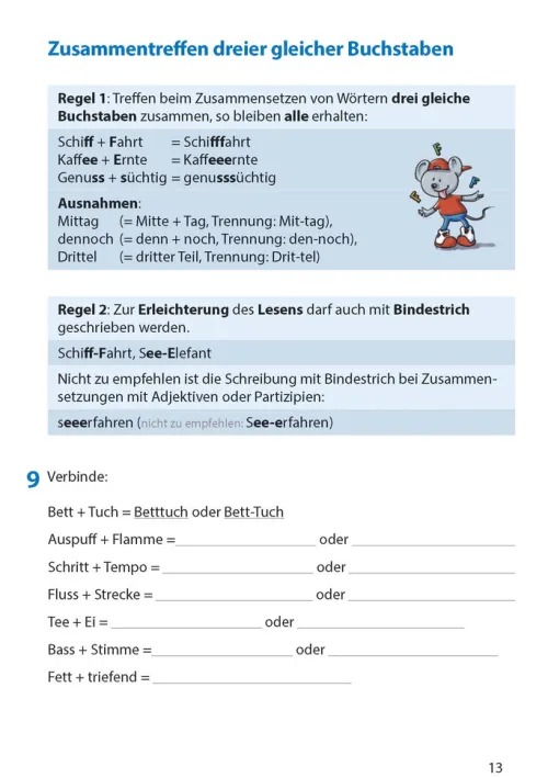 - Übersichtliche Merkkästen mit eingängigen Beispielen zu den wichtigsten Rechtschreibregeln