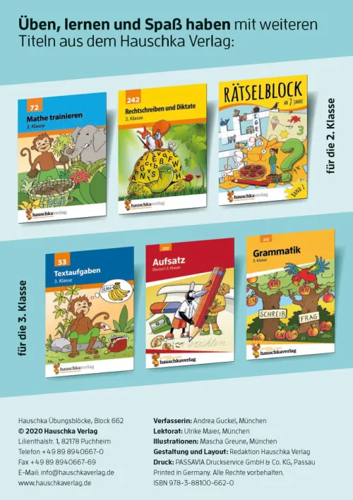 Die Übungsblöcke decken die Fächer Mathematik, Deutsch und Englisch ab und richten sich an Schülerinnen und Schüler der 1. bis 4. Klasse. In übersichtlichen Lernportionen können die Kinder Unterrichtsinhalte üben und vertiefen. Häufig werden dabei spielerische und rätselhafte Aufgabenformate gewählt, welche die Motivation und das Durchhaltevermögen steigern. Die Titel können das Schuljahr begleiten, sie eignen sich aber auch hervorragend zur Beschäftigung und Wiederholung in den Ferien. Alle Übungsblöcke sind von erfahrenen Pädagoginnen und Pädagogen entwickelt und mit Kindern getestet worden.