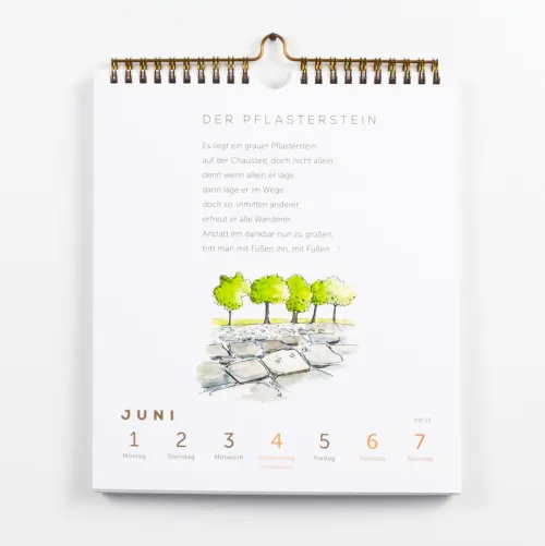 Damit die einmaligen literarischen Sprachperlen ansprechend im Kalender umgesetzt werden, sind die Kalenderseiten mit Illustrationen von Melanie Garanin gestaltet. Die Bilder greifen das Besondere des jeweiligen Gedichts oder Spruchs auf und machen diesen Kalender nicht nur zu einem Geschenk mit Humor: Der Literaturkalender ist ein einzigartiges Deko-Element an jedem Ort, ein Hingucker für Groß und Klein.
