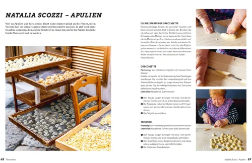 Als contorni Beilage zu den Rezepten und praktischen Informationen in der Pasta-Schule serviert Domenico atmosphärische Reisefotos und spannende Geschichten rund um die Nudel: Er besucht Pasta-Feste und Nudel-Hotspots, z. B. das Tortellini Fest in Mantova, di Sagra delle Orecchiette in Bari und natürlich Gragnano, die Hauptstadt der Pasta. Er holt sich Tipps von Experten in Manufakturen und entlockt Hausfrauen ihre Geheimrezepte. Besser kann man Pasta nicht genießen!