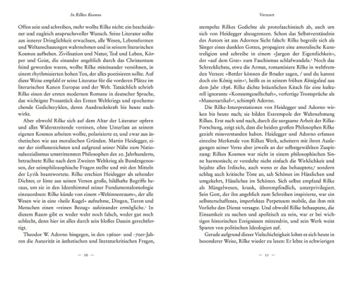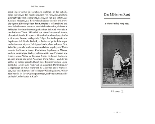 Offen sein und schreiben, mehr wollte Rilke nicht: ein bescheidener und zugleich anspruchsvoller Wunsch. Als Autor erfuhr er »das ganze Leben [. . .], als ob es mit allen seinen Möglichkeiten mitten durch ihn durchginge«. Allerdings auch mit all seinen Widersprüchen: Rilke floh vor seinen Musen und konnte ohne sie nicht sein, beklagte die Folgen des menschengemachten Fortschritts und begeisterte sich für die Technik, er liebte das einfache Leben und hatte eine ausgeprägte Vorliebe für schöne Dinge und Wohnsitze. Er schuf mit den Aufzeichnungen des Malte Laurids Brigge einen der ersten modernen Romane und epochemachende Gedichtzyklen, deren Ausdruckskraft bis heute nachwirkt.