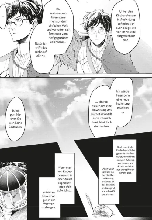 Seiichiro wurde dazu abgeordnet, eine Inspektion in der Kirche durchzuführen, wo er ein nicht immer gern gesehener Gast ist. Ohne ihn stattfinden muss hingegen die dritte und letzte Expedition zur Läuterung des Miasmas. Kommandant Alesh hingegen hat sich wieder auf diese Reise begeben, und so verbringen er und Seiichiro nun zum ersten Mal seit ihrem Zusammenziehen eine längere Zeit ohneeinander. Während Sei derweil einem großen Geheimnis auf die Spur zu kommen scheint, nimmt Alesh die Fährte gefährlicher magischer Bestien auf. . .