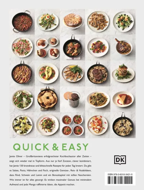 Mit diesem Buch beweist Jamie Oliver, dass man gutes Essen super einfach hinbekommen kann. Für jedes Rezept braucht man nur fünf Hauptzutaten. So geht die Zubereitung schnell, und entweder ist die Mahlzeit dann fertig und auf dem Tisch, oder der Backofen übernimmt den Rest der Arbeit. Wir reden hier von Klasse statt Masse und ein bisschen Aufmerksamkeit an der Küchenfront. Die Belohnung: ein mega Geschmackserlebnis.