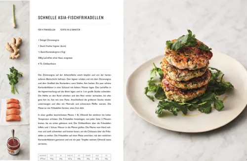 Zu jedem Rezept gibt es eine bebilderte Zutatenliste, Portions- und Zeitangaben, eine kurze, leicht verständliche Anleitung, eine Übersicht über die Nährwerte und, nicht zu vergessen, ein fantastisches Foto von dem Gericht.