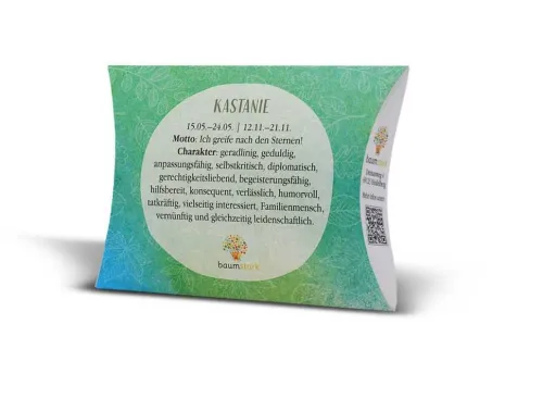 Neben dem Handschmeichler vom ganz persönlichen Lebensbaum erhält der Beschenkte sein ganz persönliches Baumhoroskop, das die Gemeinsamkeiten von Mensch und spezifischem Lebensbaum aufzeigt.