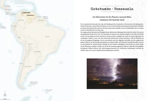 Ein Ort in Sibirien, an dem die Temperaturen im Winter bis auf -70 Grad fallen, eine indische Stadt, in der zwölf Meter Regen pro Jahr fallen, eine isländische Heidelandschaft, über die ein beständiger Wind fegt, eine Bucht in Venezuela, in der unablässig Blitze vom Himmel zucken , eine Stadt in Japan, die im Winter unter einer sieben Meter dicken Schneedecke verschwindet.