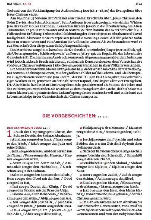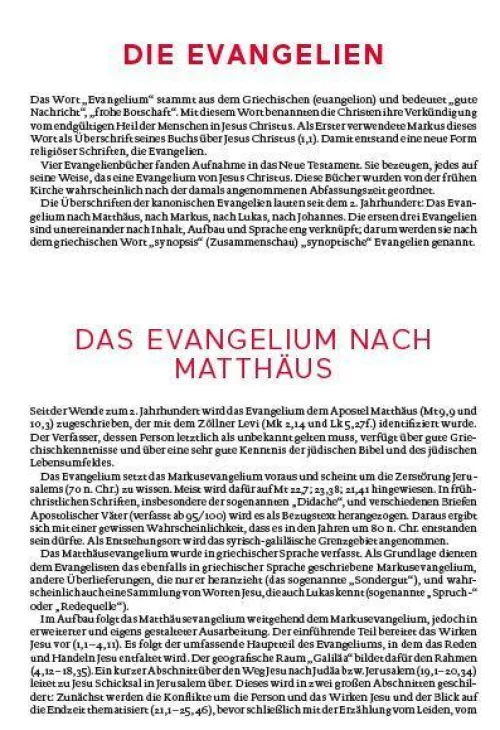 Diese Bibelausgabe ist im zweispaltigen Satz auf hochwertigem Bibeldünndruckpapier im zweifarbigen Layout unter Verwendung der Schmuckfarbe Rot für eine bessere Übersichtlichkeit gedruckt. Diese Gesamtausgabe der Einheitsübersetzung ist mit einer besonders großen Schriftgröße in großem Format gestaltet. Ergänzt wird die Großdruckbibel durch Einführungen in jedes biblische Buch, Zwischenüberschriften, Anmerkungen, Verweisstellen und einem Anhang mit Stichwort- und Personenregister, Zeittafel mit Sacherläuterungen und neun Karten. Zusätzliche Sonderseiten erleichtern den Einstieg ins Bibellesen:- Wie finde ich eine Bibelstelle? – Bibeltexte zum Entdecken- GPS-Daten für biblische OrteDiese Bibelausgabe ist im zweispaltigen Satz auf hochwertigem Bibeldünndruckpapier im zweifarbigen Layout unter Verwendung der Schmuckfarbe Rot für eine bessere Übersichtlichkeit gedruckt.