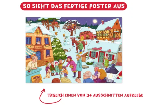 Für jeden Tag im Advent enthält das Adventskalenderbuch, neben einem Kapitel der weihnachtlichen Geschichte zum Lesen, auch ein Bild, das du ausschneiden und auf das beigelegte Poster kleben kannst.