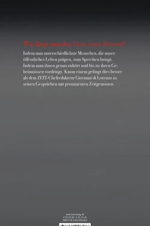 Lesend tauchen wir ein in die Überzeugungen und Biografien von Menschen, die auf unterschiedliche Weise die Gegenwart geprägt haben. Giovanni di Lorenzo schafft dabei eine Atmosphäre seltener Nähe und Offenheit, scheut aber nie die Konfrontation. Und entlockt so auch ausgebufften Medienprofis Dinge, die sie vorher öffentlich nicht gesagt haben.