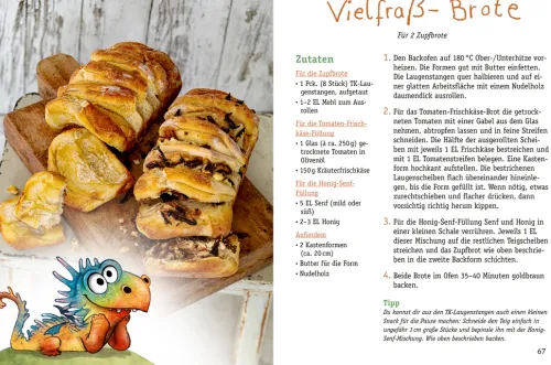 Im Kochbuch zum Kinderbuch Bestseller zeigen uns Furzipups und seine Freunde, was das Drachental kulinarisch zu bieten hat. Ob Kesselküchlein, Mammut-Kacka, Drachen-Fürzchen oder Pups-Pott – mit mehr als nur einer Prise Humor machen die Rezepte Lust auf gemeinsame Kochabenteuer mit dem berühmten Knatterdrachen!