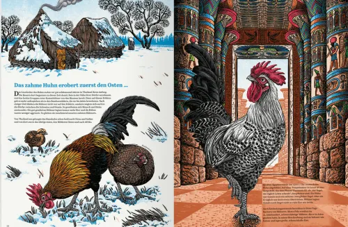 DAS Buch für alle Hühnerfreunde, voller Wissen über diese besonderen und beliebten Tiere, großartig illustriert und im Riesenformat begeistert nicht nur jugendliche Leser! Hühner sind ganz wunderbare Tiere. Seit vielen Millionen Jahren bevölkern sie unsere Erde, viel länger als wir Menschen. Unglaublich, aber wahr: Sie sind direkte Nachfahren der Dinosaurier. Außerdem gibt es mehr Hühner als sämtliche Hunde, Katzen, Kühe und Schweine zusammen. Wenn das nicht Grund genug ist, das bunte Federvieh einmal genauer zu betrachten! Mit meisterhaften Linolschnitten entführt uns Jan Hamstra in die erstaunliche Welt des Huhns:- Woher weiß man, ob ein Huhn ein weißes oder braunes Ei legen wird? – Wie krähen Hähne auf Englisch und Japanisch? – Wie sieht ein Strupphuhn aus und wie ein Bielefelder? – Was brauchen Hühner für ein glückliches Leben? – Und was war denn nun zuerst da: das Huhn oder das Ei? Alles, was es über Hühner zu Wissen gibt, von ihrer Herkunft, Verwandtschaft, ihrem Körperbau bis hin zu Nahrungsaufnahme und Fortpflanzung, dazu viele Interessante Fakten aus der Kulturgeschichte von Mensch und Huhn.