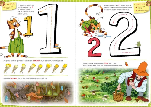 Die große Vorschulbuchreihe von Pettersson und Findus bereitet Kinder perfekt auf den Schulstart vor. Zukünftige ABC-Schützen lernen hier Laute, Buchstaben und Zahlen zu erkennen, Schwungübungen zu machen, zu Reimen, ein Zahlen-, Mengen- und Größenverständnis zu entwickeln sowie Gemeinsamkeiten und Unterschiede zu erkennen. Dabei stehen Spaß, spielerisches Lernen und ein altersgerechter Schwierigkeitsgrad im Vordergrund: „Mein Übungsheft für die Vorschule“ bietet spielerische Aufgaben zu Zahlen und Buchstaben, Wochentagen, Uhrzeit und vielem mehr.