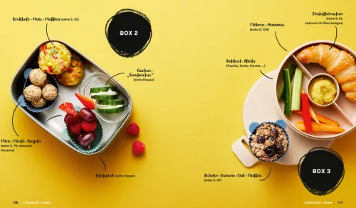 Die über 60 Rezepte für daheim und unterwegs (vorwiegend vegetarisch) punkten mit überschaubaren Zutatenlisten, Meal-Prep-Tipps und Aufbewahrungshinweisen. So ist die Zubereitung auch im Alltag mit Kindern einfach machbar. Und weil oft kleine Geschwister mitessen, sind die Rezepte mit Notizen für Beikostanfänger und Baby-led Weaning (BLW) versehen. Die Großen dürfen übrigens auch mal naschen! Gesunde Familienküche für alle.