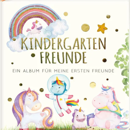 Ein ganz besonderes Freundebuch für begeisterte Einhornfreunde und ihre ersten Begleiter und Begleiterinnen im Kindergarten. Zauberhafte Einhörner führen durch ein wundervolles Freundealbum, indem jeder auf besondere Weise eingeladen wird, sich zu verewigen damit die ersten Freundschaften im Leben nicht vergessen werden und später wieder aufleben können. Auf 72 Seiten kann man reichlich Fragen beantworten, ankreuzen, ausmalen und mitmachen um auf natürliche Weise die soziale Bindung und persönliche Kreativität zu fördern. Damit das Freundschaftsbuch auch lange Freude bereitet, sind die Seiten besonders stabil und der Einband des Buches fest und folienkaschiert. Und für das gewisse Etwas gibt es eine wunderschöne Goldfolienprägung auf dem Cover des Buches, so kann jeder erkennen dass es sich um ein einzigartiges, persönliches Erinnerungsstück handelt. Ein besonderes Geschenk für die Zeit im Kindergarten und die ersten Geburtstage mit Freunden!