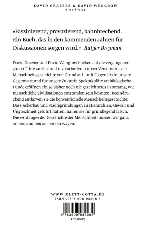 »Graeber und Wengrow entlarven Klischees über die weit zurückreichende Geschichte der Menschheit, um unserem Denken zu erschließen, was in der Zukunft möglich ist. Es gibt kein vitaleres, kein unserer Zeit angemesseneres Projekt.«