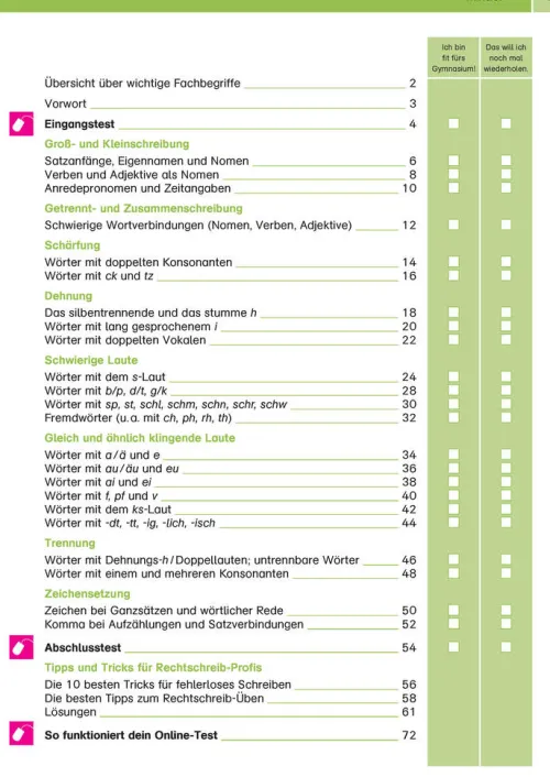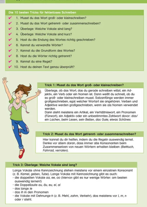 Hier kannst du in übersichtlichen Lerneinheiten intensiv üben: über 140 Übungen sowie zahlreiche Tipps und Tricks machen fit im Thema Rechtschreibung.