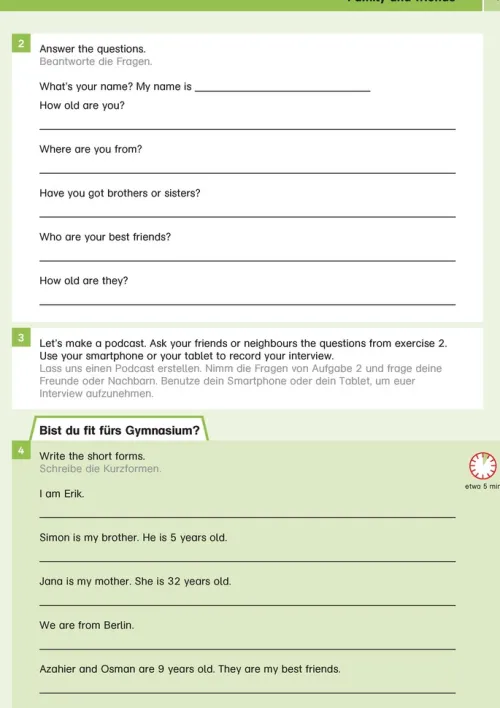 - Extra-Übungen mit Zeitangaben: Auf jeder Doppelseite gibt es spezielle Übungen mit Zeitangaben, die künftige Gymnasiasten können müssen
