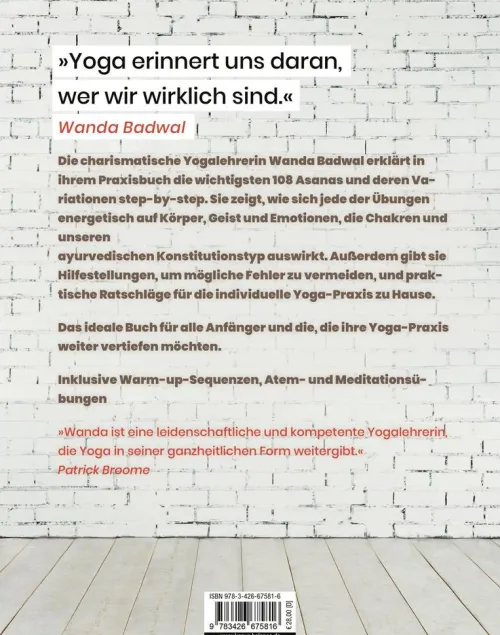 Die charismatische Yoga-Lehrerin Wanda Badwal erklärt in ihrem Yoga-Praxis-Buch die wichtigsten 108 Asanas Schritt für Schritt und beschreibt ihre ganzheitliche Wirkung. Sie gibt hilfreiches Basiswissen zur Geschichte des Yoga, zur Yoga-Philosophie, sowie zum Chakren-System und zum Ayurveda, sodass dieses Buch zu einem Standartwerk und treuen Begleiter für alle Yogi*nis werden kann.